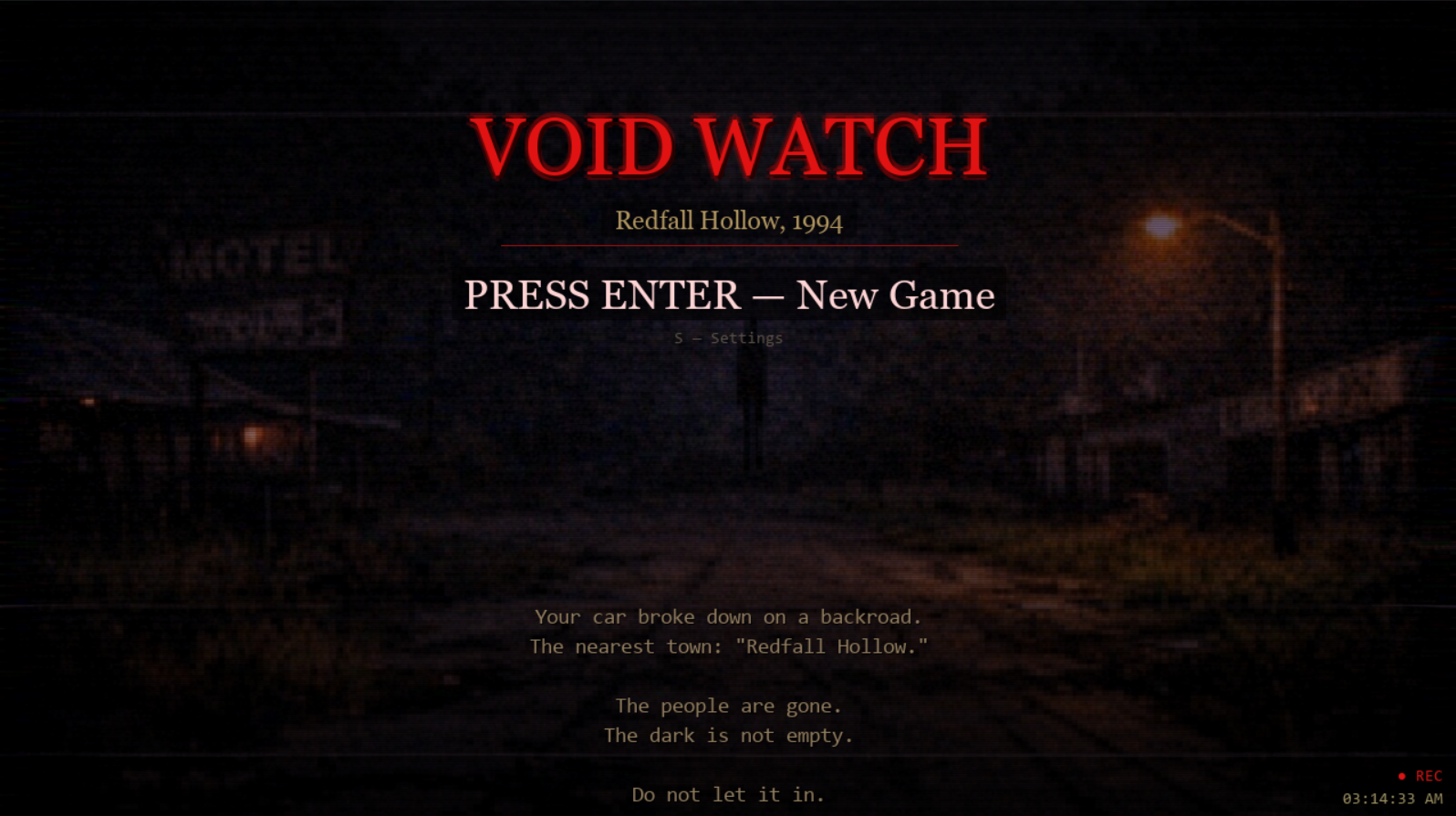 Welcome to VoidWatch, a tense VHS-style horror game that throws you into a quiet town crawling with unhinged entities. With only your wits, flashlight, and a map, you must survive the motel, gas station, sheriff’s department, school, hospital, tunnels, and the foundry to escape—and maybe uncover the town’s darkest secrets.